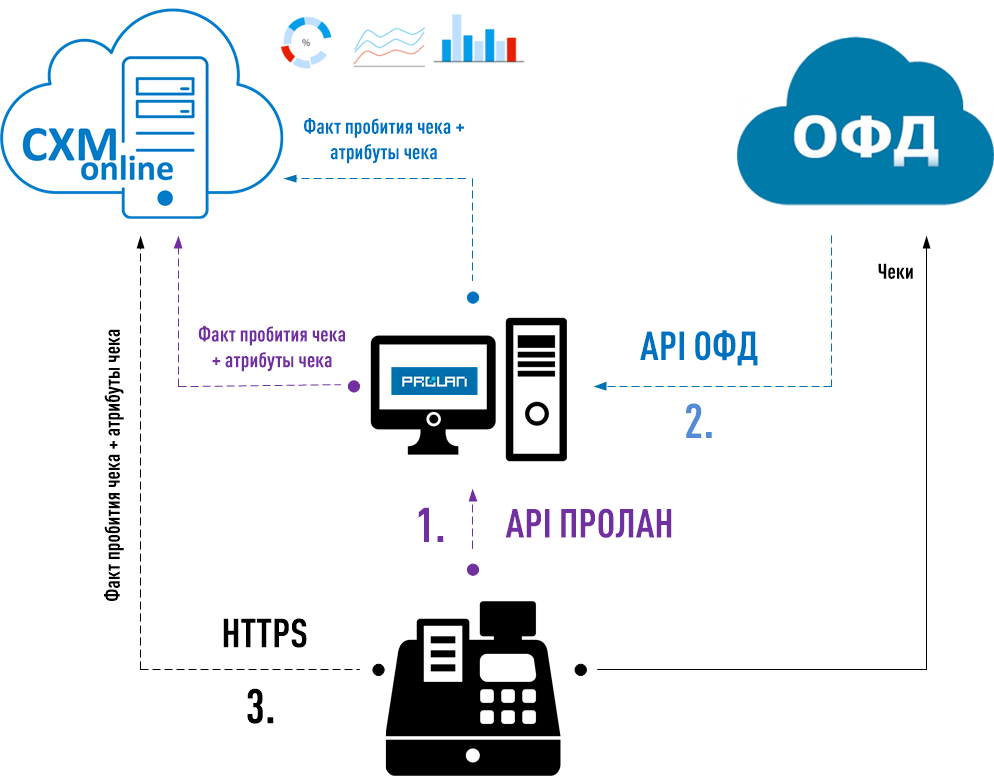 Поддерживаются три способа интеграции с кассовой системой: