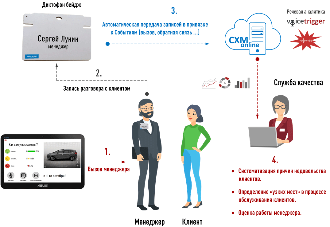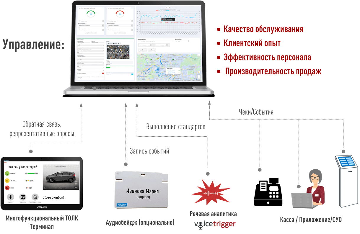 Объединение информации о продажах, воспринимаемом качестве обслуживания, выполнении стандарта обслуживания, повышает эффективность управления, как производительностью продаж, так и клиентским опытом.
