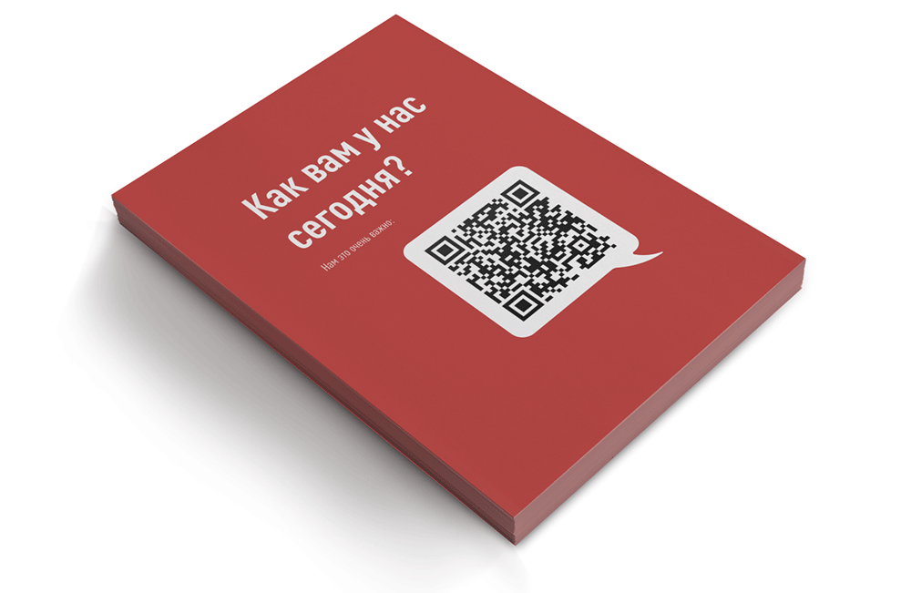 Например, если клиент дал положительную оценку качества полученной услуге, то на экран выводится QR-код, ссылающийся на страницу компании на Яндекс Картах, 2 GIS и т.п. Если же клиент дал отрицательную оценку, то на экран выводится QR-код, ссылающийся на страницу с опросом QR-Промоутера.