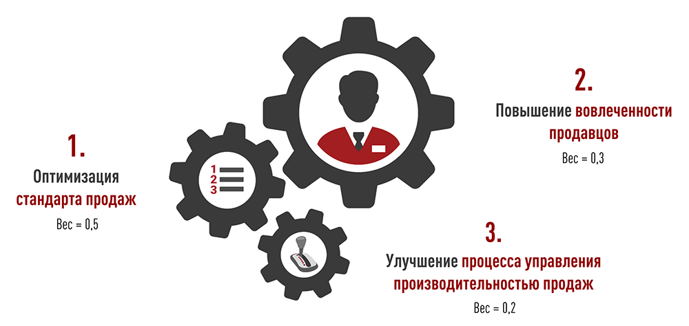 Красный Штаб – это эффективная реализация комплексного подхода к повышению продаж, включающего оптимизацию стандарта продаж, повышение вовлеченности продавцов, улучшение процесса управления производительностью продаж. Комплексный подход с правильной последовательностью этапов (см. на рисунке ниже) позволяет быстро и эффективно повысить конверсию, средний чек и другие показатели операционной эффективности.