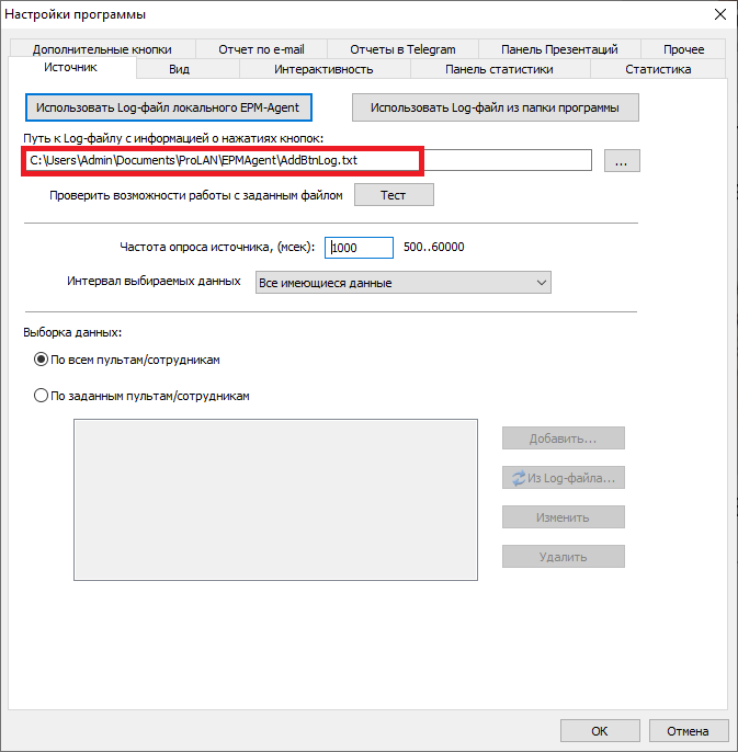 В настройках программы задается список работников с привязкой к именам пультов, оценки которых записываются в LOG файл.
