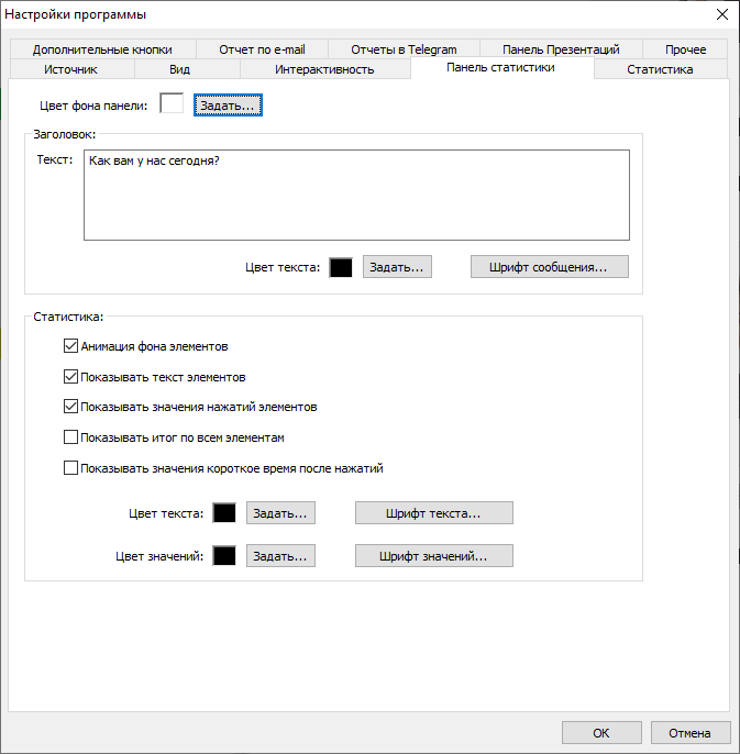 В интерактивном режиме, программа также поддерживает возможность размещения на панели статистики дополнительных кнопок.