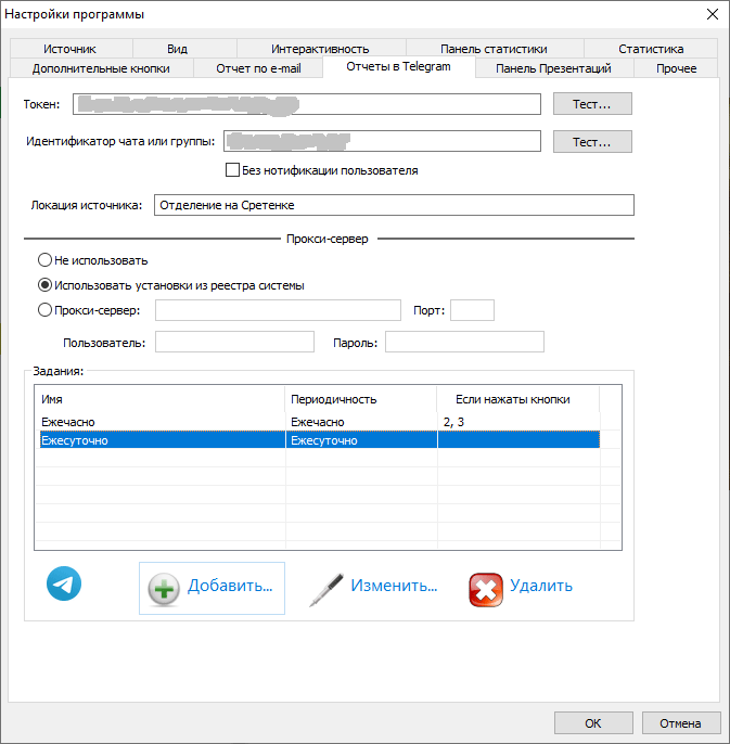 В настройках программы создается одно или несколько заданий на отправку отчетов в группу или чат Telegram.