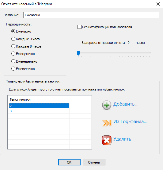 Кроме того, вы можете задать задержку времени отправки сообщения с отчетом на нужное количество часов, например, чтобы отчет не оправлялся ночью.