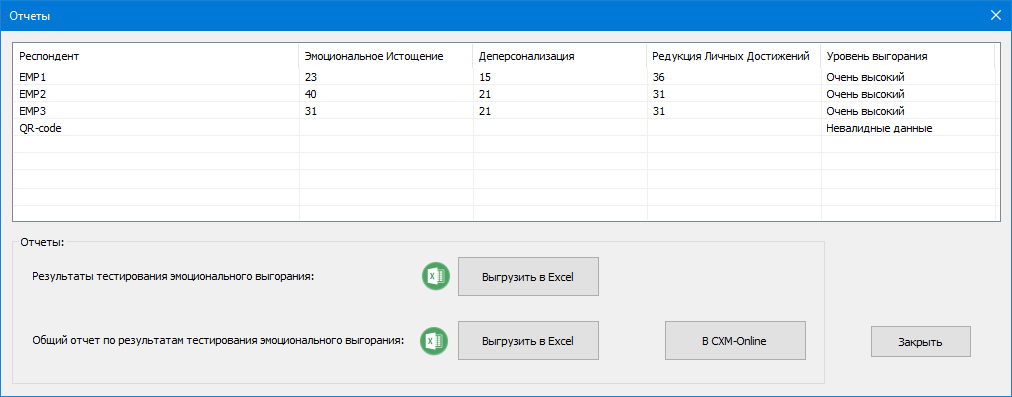 Инструмент для управления данными облачного сервиса CXM-Online и создания отчетов по специальным методикам тестирования.