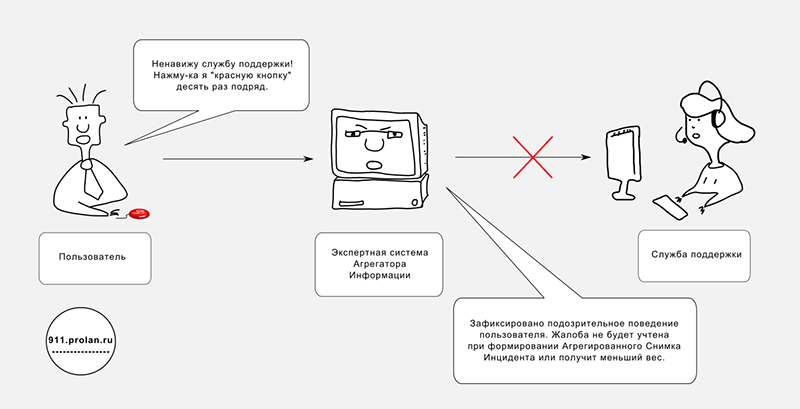 Логика работы Экспертной системы настраивается. Например, Экспертная система может оценивать, насколько часто пользователь нажимает «красную кнопку» в течение определенного периода времени. Так, если в течение нескольких минут пользователь нажал кнопку несколько раз подряд, то, скорее всего, это будет интерпретировано как одно нажатие. Нажатия кнопки какими-то особенно неадекватными пользователями можно вообще не учитывать при формировании агрегированных снимков инцидентов. Тем не менее, в отчётах все нажатия всех пользователей будут зафиксированы.