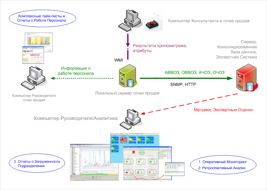 Кратко суть метода: «Хронометраж по кнопке» заключается в следующем. Начало выполнения Задания-Транзакции всегда фиксируется по нажатию Консультантом «красной кнопки». Окончание может фиксироваться по-разному, в зависимости от успешности сделки. Так, если Клиент уходит до того, как Консультант может его идентифицировать, то окончание фиксируется Консультантом вручную - установкой соответствующих атрибутов в программе SelfTrace. Если клиент был идентифицирован Консультантом с использованием CRM, то окончание может фиксироваться автоматически, по факту занесения соответствующей информации в базу данных СRM.
