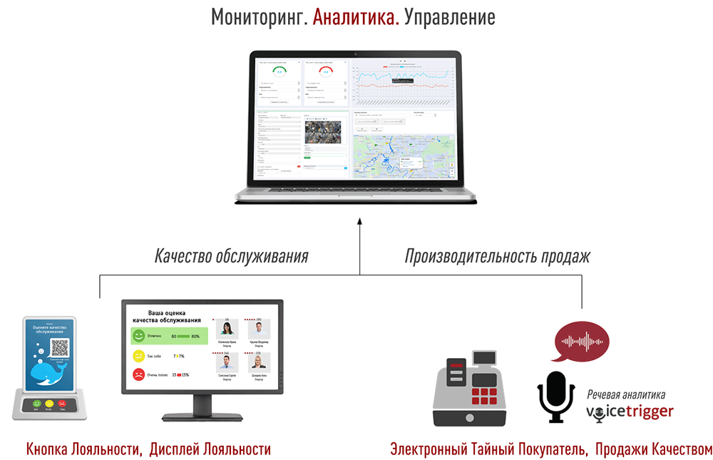 - Запись и оценка речи фронт персонала во время обслуживания клиентов.