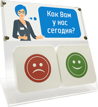 В процессе или после окончания обслуживания клиенты, нажимая на соответствующий смайлик, оставляют обратную связь о воспринимаемом качестве обслуживания.