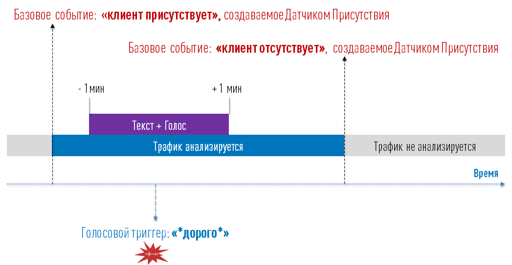 Анализ с привязкой к базовым событиям сокращает объем анализируемого трафика (снижает стоимость речевой аналитики) и устраняет фиксацию ложных событий.